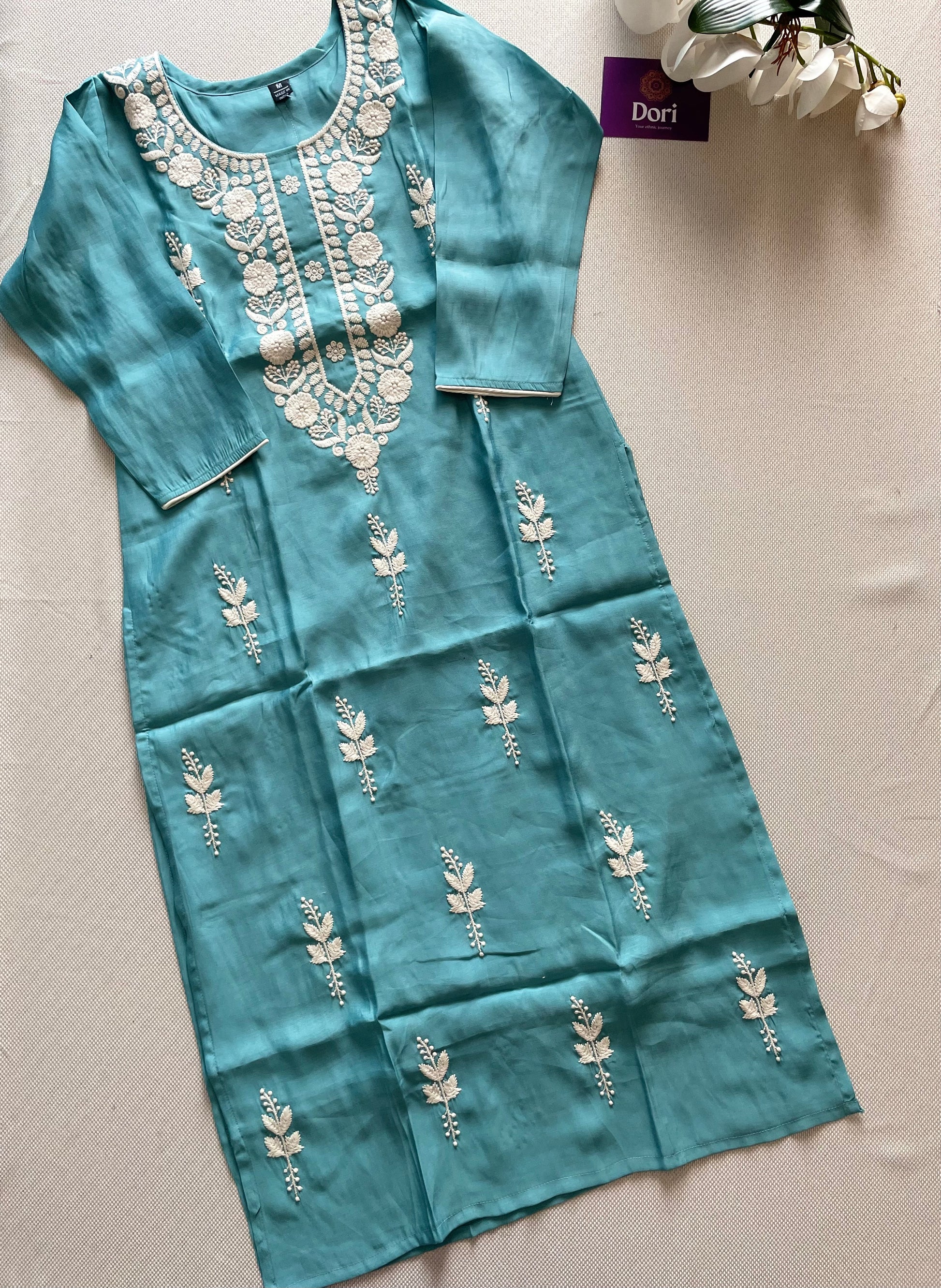 🦋Crafted in muslin silk, this straight kurti features exquisite embroidery all over. The inner silk lining adds a touch of elegance and comfort. Perfect for any occasion, this kurti is a must-have for those looking to elevate their style game.