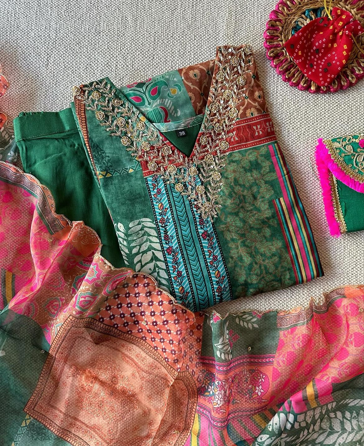 🌸Organza silk suit set. This set comes with straight kurti, pant & organza silk dupatta