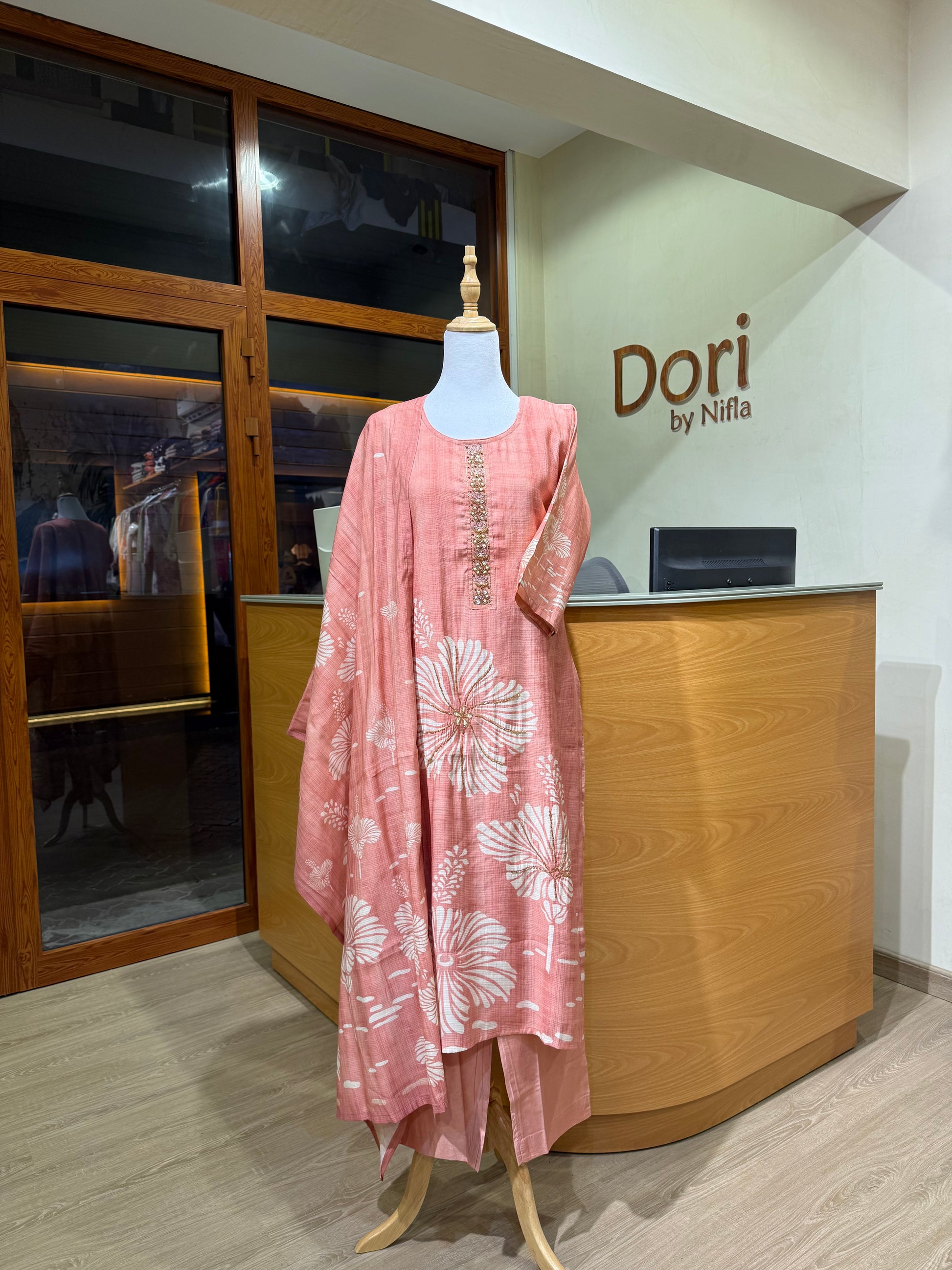Update your ethnic wardrobe with the Peach wooven silk suit. Made of silk, this ensemble boasts intricate floral patterns and delicate detailing that exudes elegance. Perfect for any special occasion, this stunning peach and ivory suit set is sure to elevate your style game.